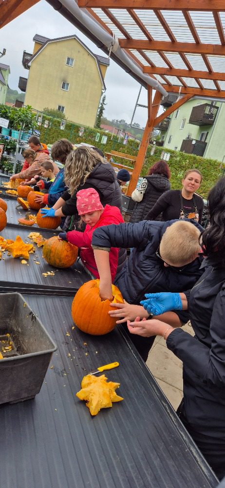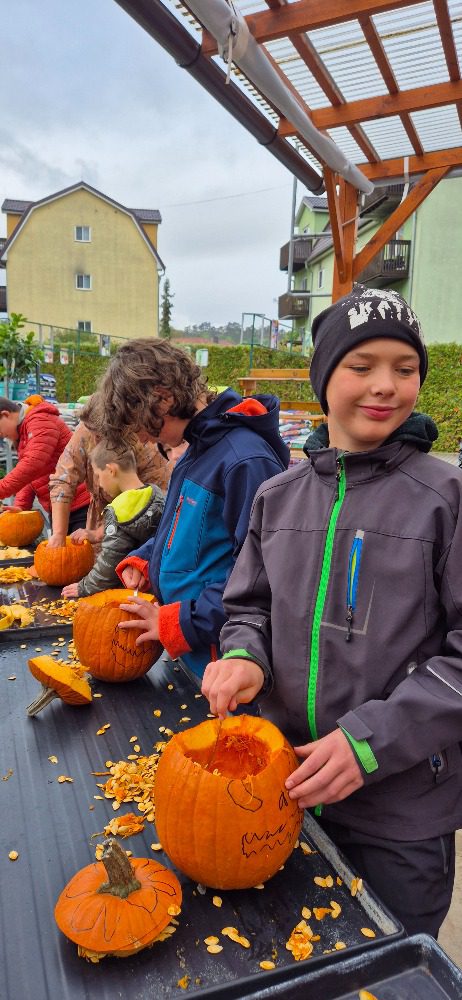 Akce se zúčastnila modrá, duhová a žlutá třída. Žáci si vyřezali krásné dýně a užili si příjemný den.